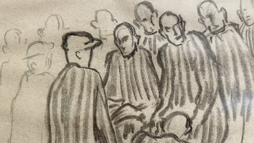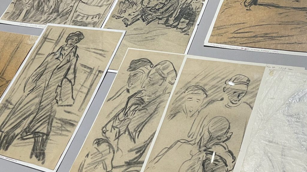 Вероватно не би преживео, да од свог другара који је радио као доктор, није добио папире и мало угља, и тада почиње да црта трагичне призоре из логора.Сведочанства злочина, трагичне призоре смрти и ликове својих пријатеља који су нестајали у гасним коморама и крематоријумским пећима. То је био његов сликарски пут који га је водио до освајања слободе. Ти цртежи које је цртао под претњом смрти можда су са собом носили наду да ће остављајући документе о злочинима над својим убијеним друговима њему донети живот.