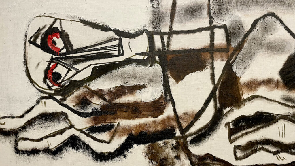 Милош више није желео само да сања о слободи, него је желео и да се слободно креће у бескрајном простору уметности. Тако се његов сан претворио у прву апстрактну слику коју је изложио на првој изложби Децембарске групе.